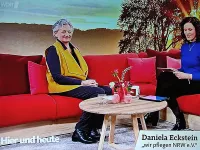 Daniela Eckstein, Vorstandsmitglied von wir pflegen NRW, ist während der Sendung live im Studio und erklärt, welche Entlastungsmöglichkeiten es für pflegende Angehörige gibt.