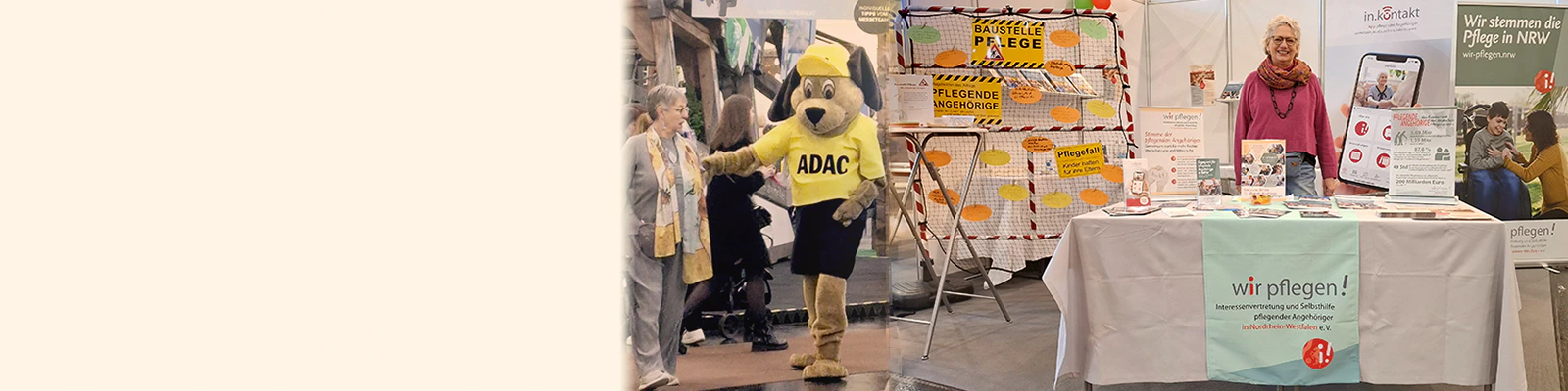 Die WIESE-Aktionsfläche zeigte zugleich, wie vielfältig Selbsthilfe in NRW ist: vom Bilderbuchkino mit Bastelaktion für Kinder über einen Parcours mit Rausch- und Promillebrillen bis zu kreativen Mitmachangeboten. "Gesundheit zum Anfassen" reichte vom Funktionstraining bis zu virtuellen Gesundheitsanwendungen mit VR-Brille. Ein Selfie-Point sowie Mini-Workshops sorgten zusätzlich für Aufmerksamkeit und Gesprächsanlässe - auch an unserem am Stand. Bei uns immer mit dabei: unsere "Pflege-Baustelle".